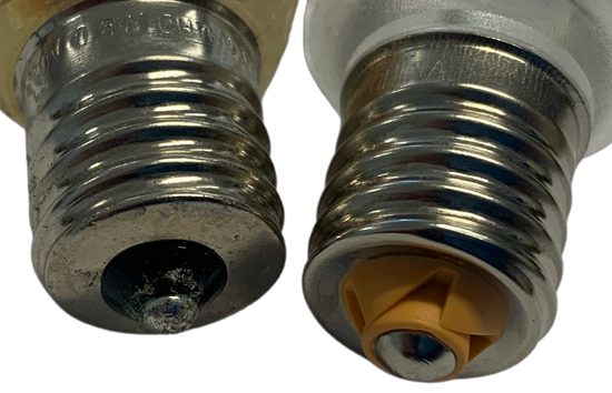 Our patented bases are non corrosive. Take a look side by side to see how the bases of the competitors' bulbs (left) corrode and lead to burnt out lights. Don't be left in the dark and NEVER buy a bulb that doesn't have our patented base design.